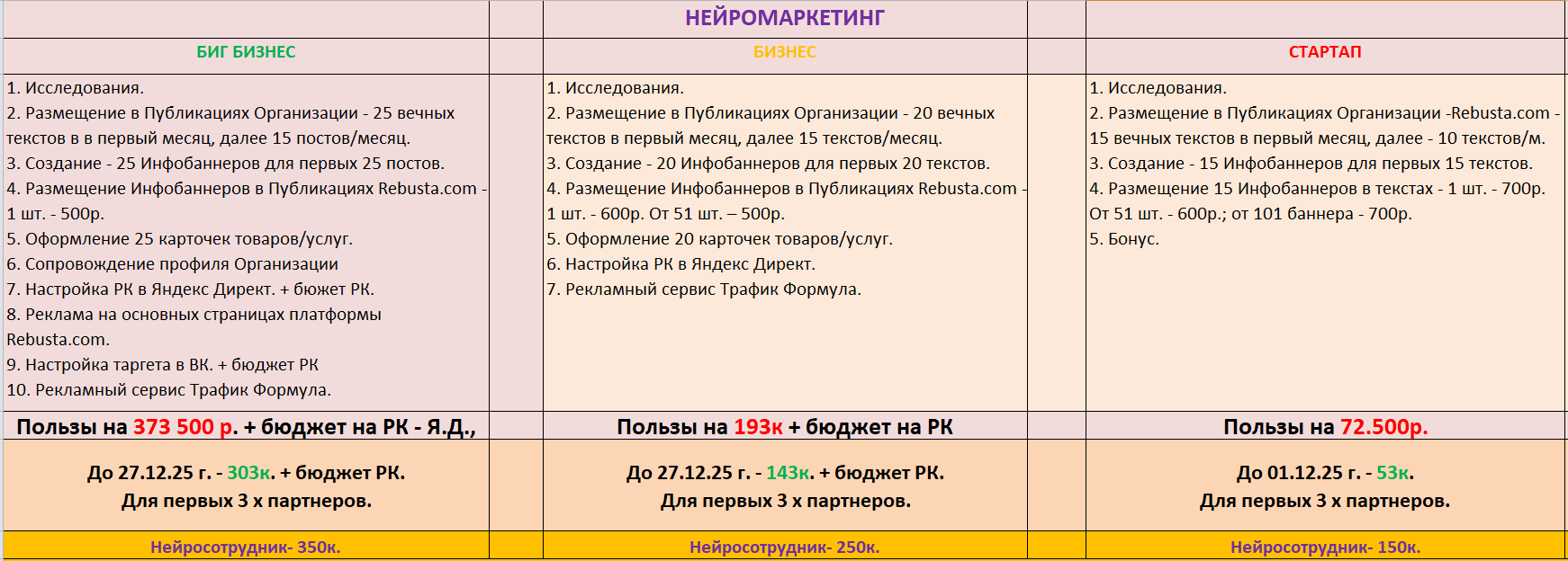 Каждый пакет включает профессиональный подход наших опытных специалистов и новейшие технологические разработки, включая использование интеллектуального помощника — Нейросотрудника, способного значительно ускорить и улучшить ваше развитие.